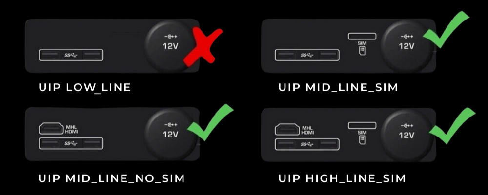 Dėmesio: kai kuriuose Jaguar modeliuose, norint aktyvuoti Apple CarPlay ir Android Auto, būtina pakeisti originalų USB bloką į suderinamą versiją, palaikančią duomenų perdavimą.