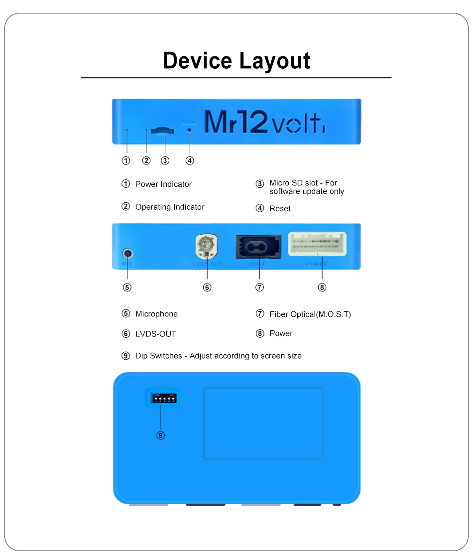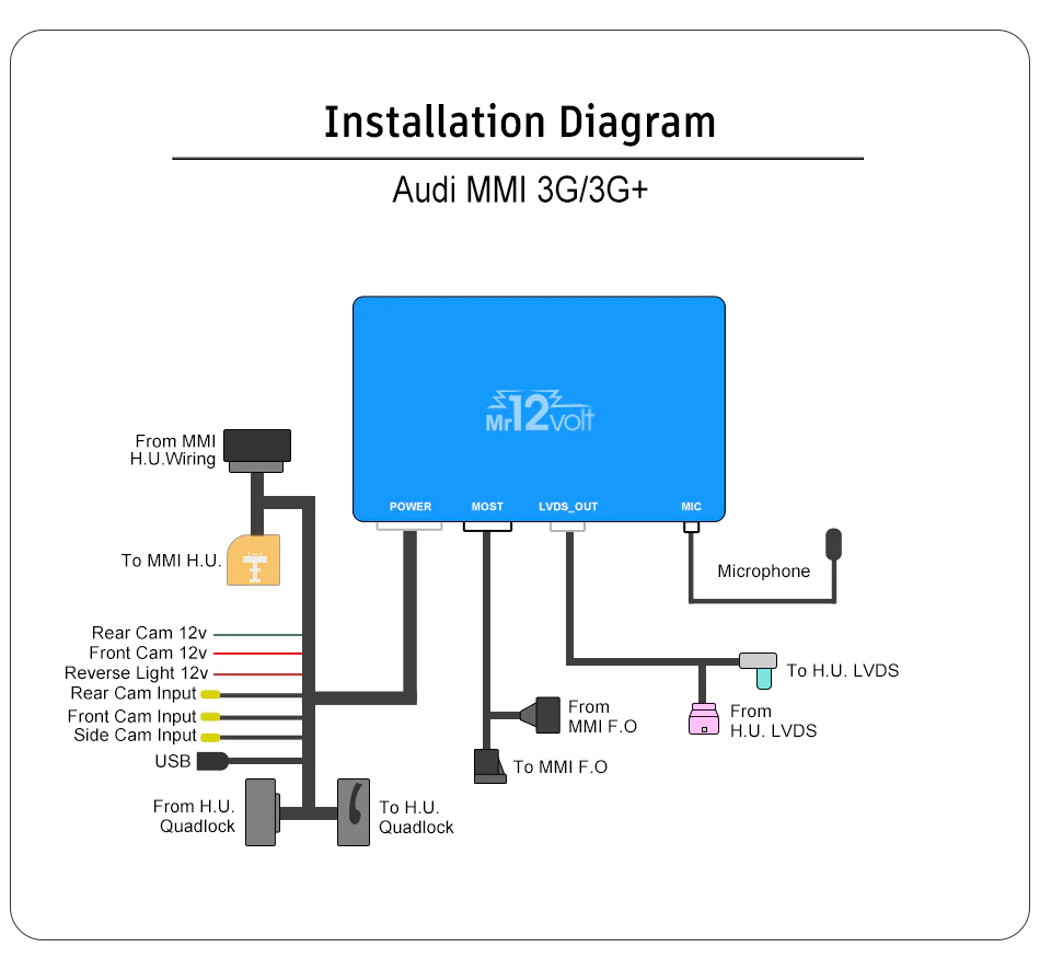 This is the highest quality product from Mr12Volt, and the only one on the market that uses a MOST connector (optical cable) for audio transmission, so that the sound quality remains unchanged. This is particularly important for cars with premium sound systems like BOSE or Bang & Olufsen.