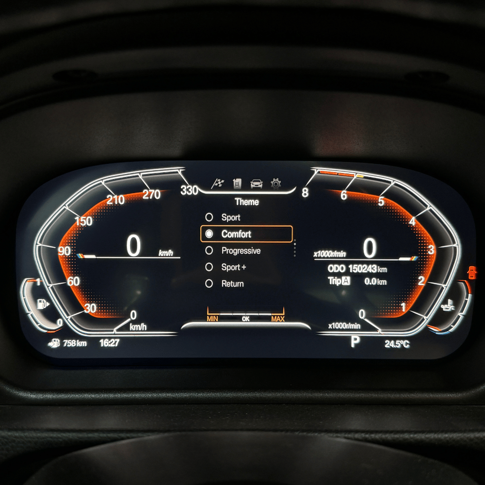 Upgrade your BMW F10 by replacing your traditional analog speed cluster with a modern Linux Digital Cluster. This advanced system delivers a sleek, high-resolution display and real-time performance data, giving your car a fresh, updated look while improving your driving experience.