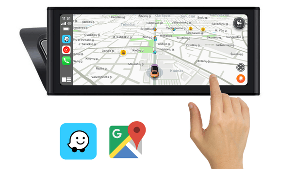 - Integruotas GPS navigacijos sistema, palaikomos programėlės kaip Waze, Google Maps.