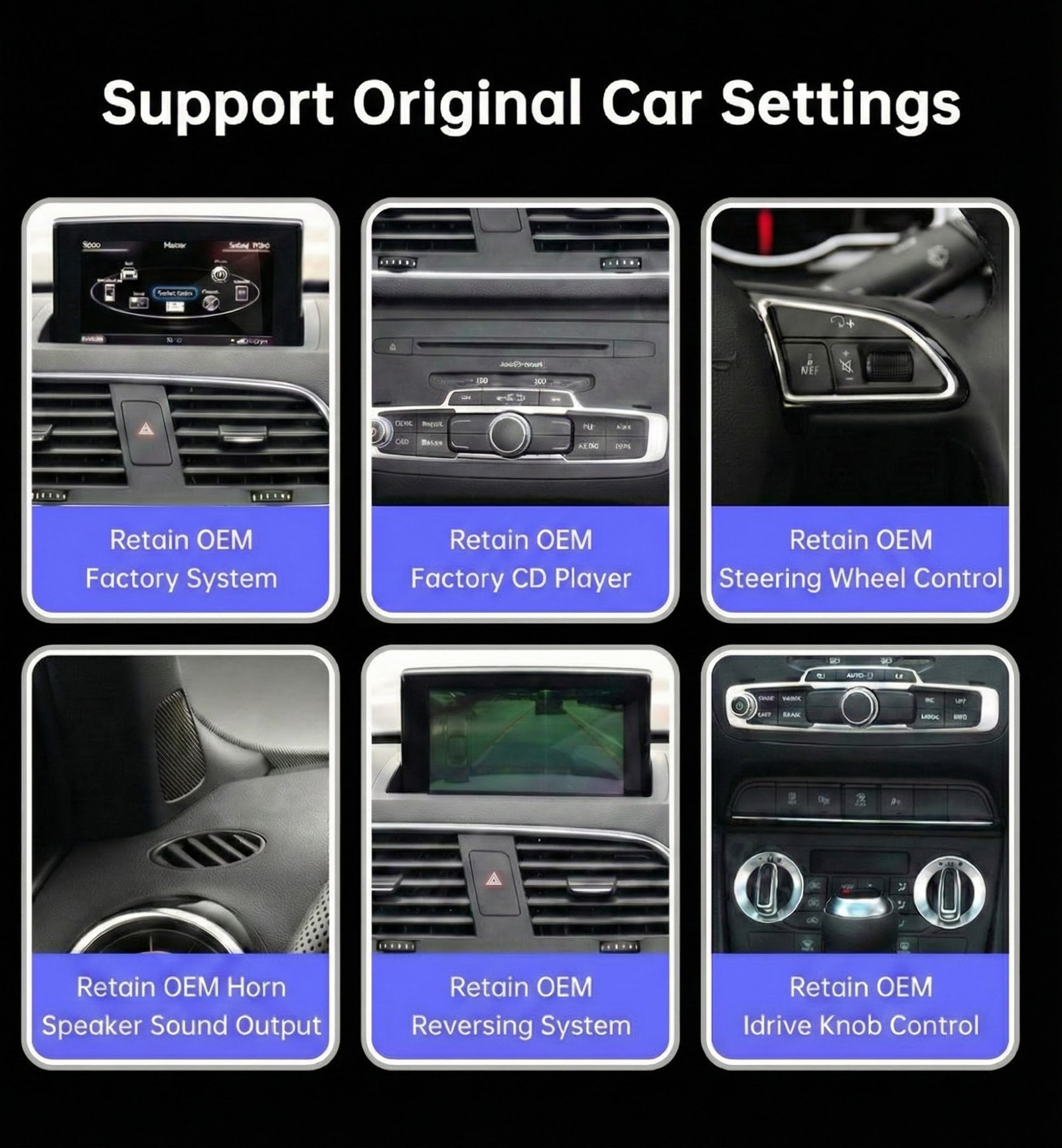 Visiškas originalių Audi Q3 transporto priemonės nustatymų ir OEM funkcijų palaikymas